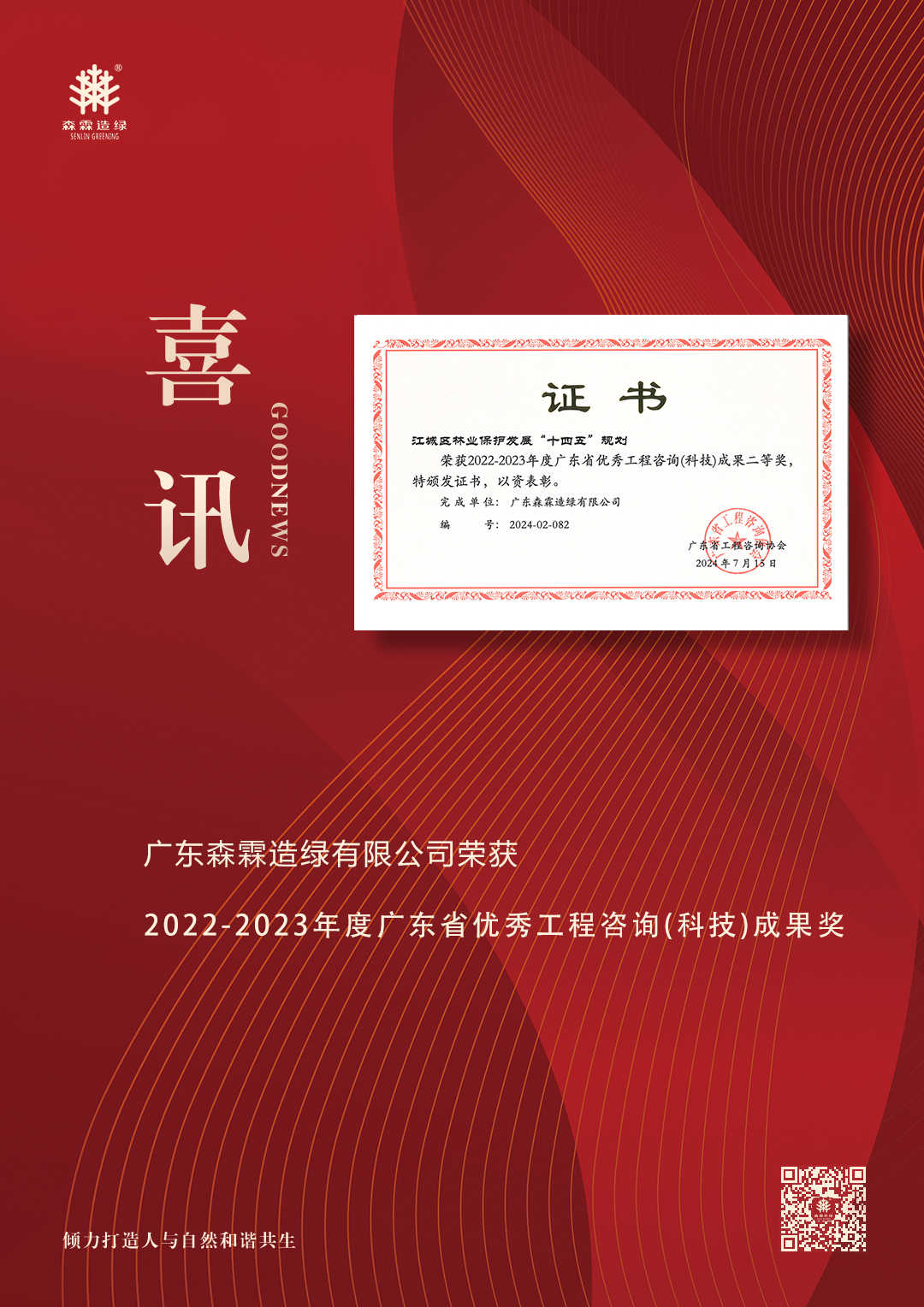 近日,2022-2023年度廣東省工程咨詢(科技)成果獎評審結(jié)果正式公布,我公司的《江城區(qū)林業(yè)保護發(fā)展“十四五”規(guī)劃》榮獲二等獎。