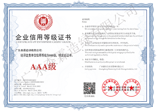 企業(yè)信用等級(jí)AAA級(jí)等級(jí)證書(shū)