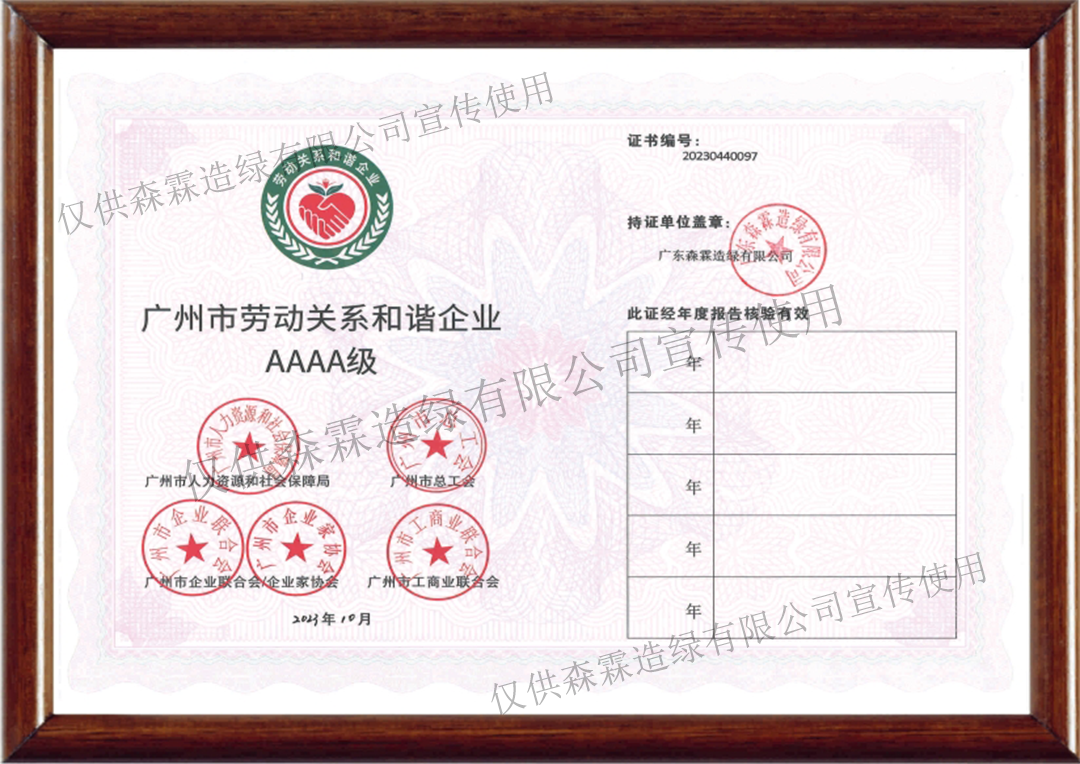 廣東省勞動(dòng)關(guān)系和諧企業(yè)AAAA級(jí)