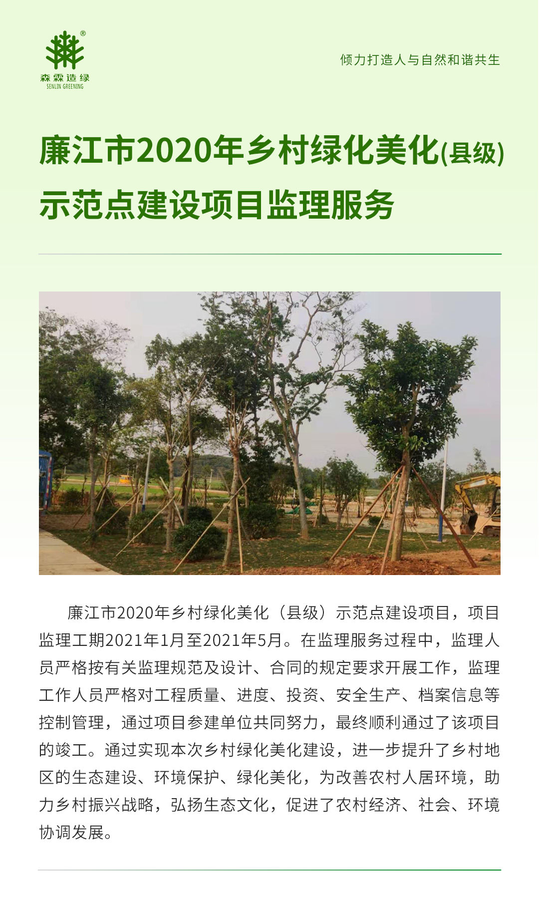 廉江市2020年鄉(xiāng)村綠化美化(縣級(jí))示范點(diǎn)建設(shè)項(xiàng)目監(jiān)理服務(wù)