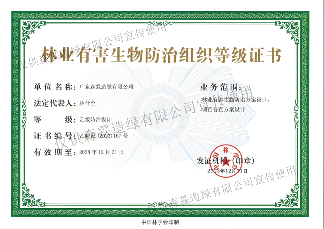 林業(yè)有害生物防治組織資質(zhì)證書(乙級(jí))