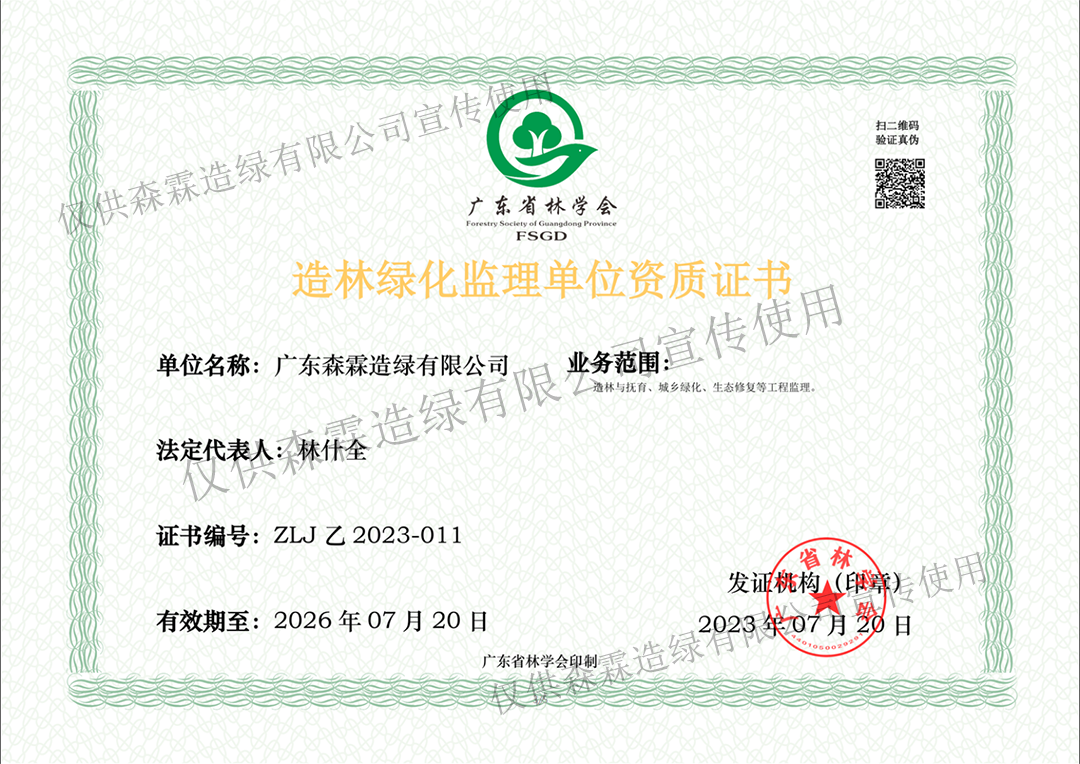 造林綠化監(jiān)理資質(zhì)證書(乙級(jí))