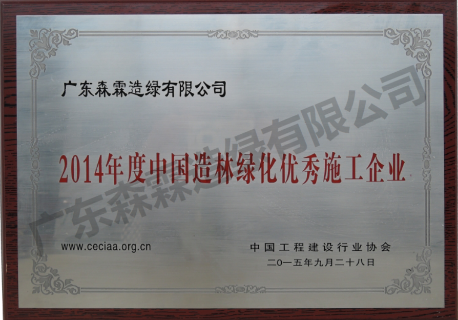 2014年度中國(guó)造林綠化優(yōu)秀施工企業(yè)