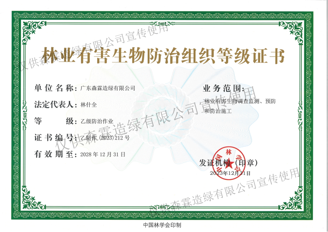 林業(yè)有害生物防治作業(yè)乙級資質(zhì)