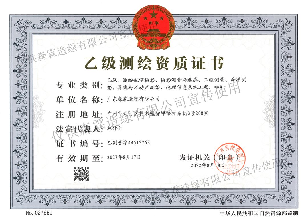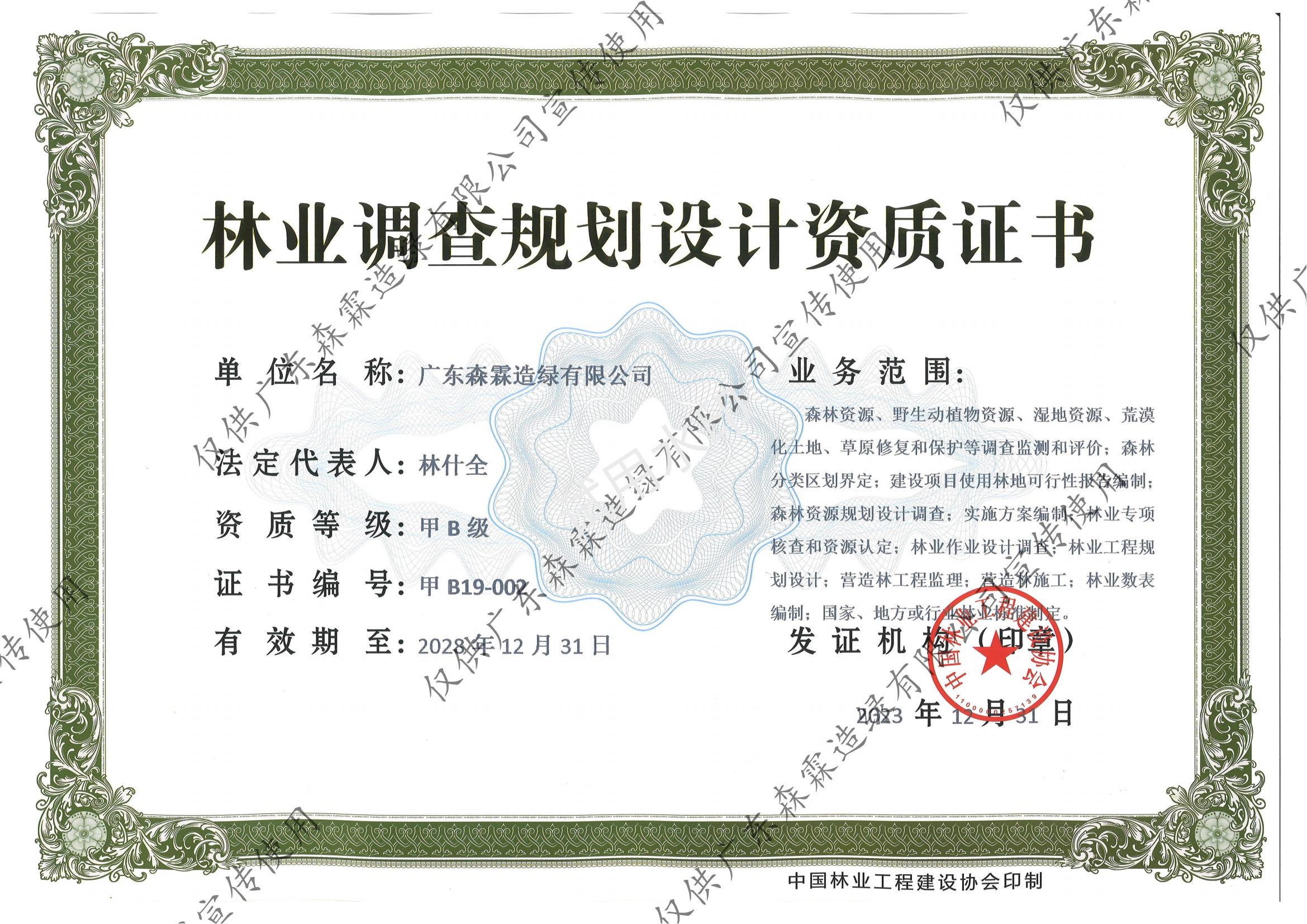 林業(yè)調(diào)查規(guī)劃設(shè)計(jì)資質(zhì)證書(甲B級)