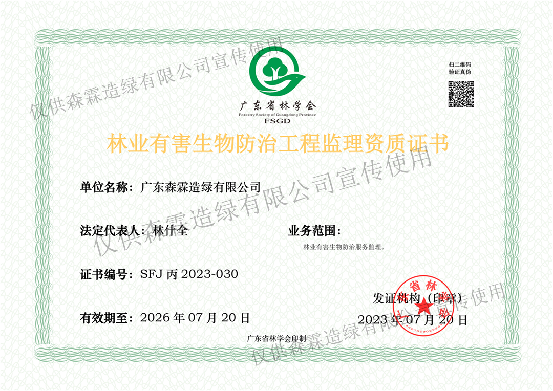 林業(yè)有害生物防治監(jiān)理資質(zhì)證書(丙級)